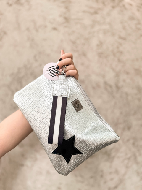 • Necesaire porta cosmeticos de eco cuero y cierre con tira al tono. Medidas28 cm de largo x 19 de alto x 9 cm de base.