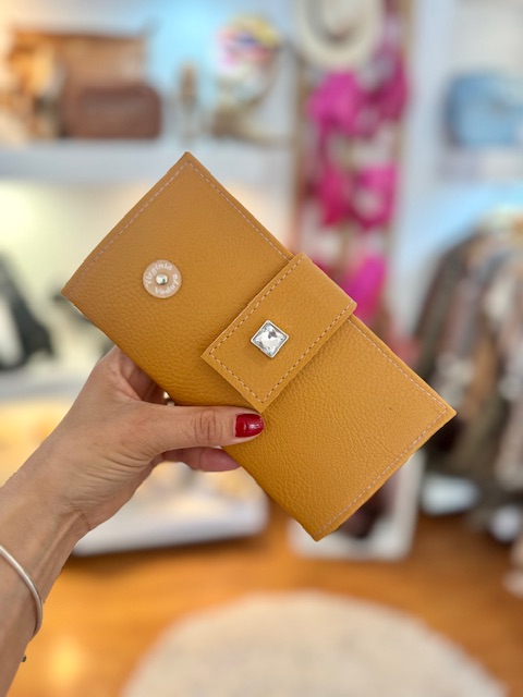 • Billeterade simil cuero. Medidas 19 cm de largo x 10 de ancho cerrada. Lugar para 8 tarjetas y billetes + dos bolsillos internos. Cierre con boton iman.