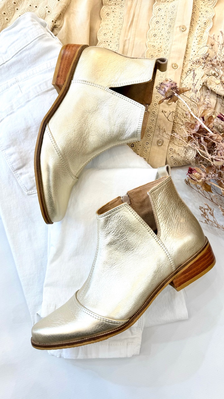 • Zapatilla de cuero con detalles en oro en talon