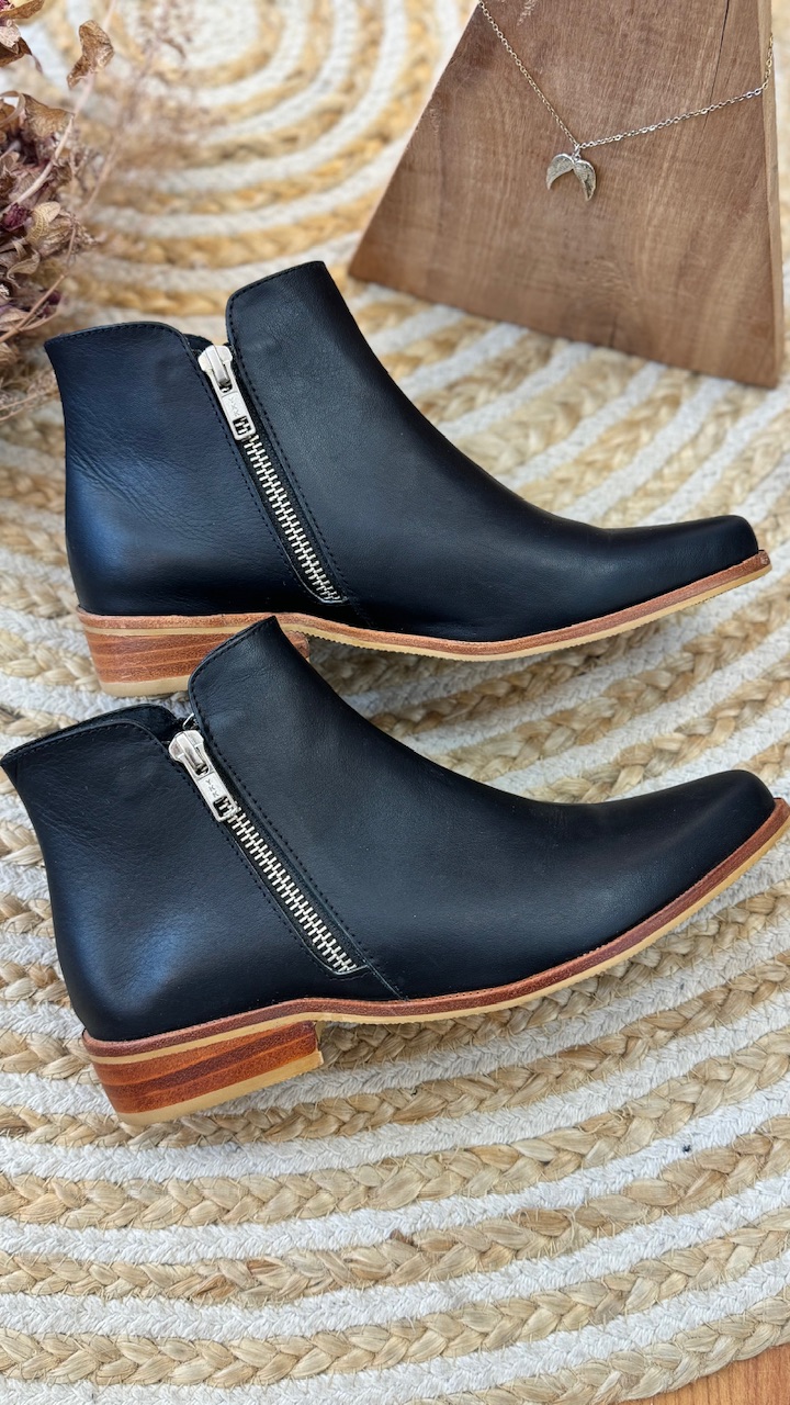 • Botineta media estación con cierre interno y detalle de moño.