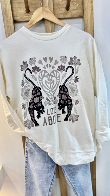 • Buzo rustico de algodon , largo con cintura y cuello rib al tono. Estampa panteras con tajos. Talle unico amplio.
