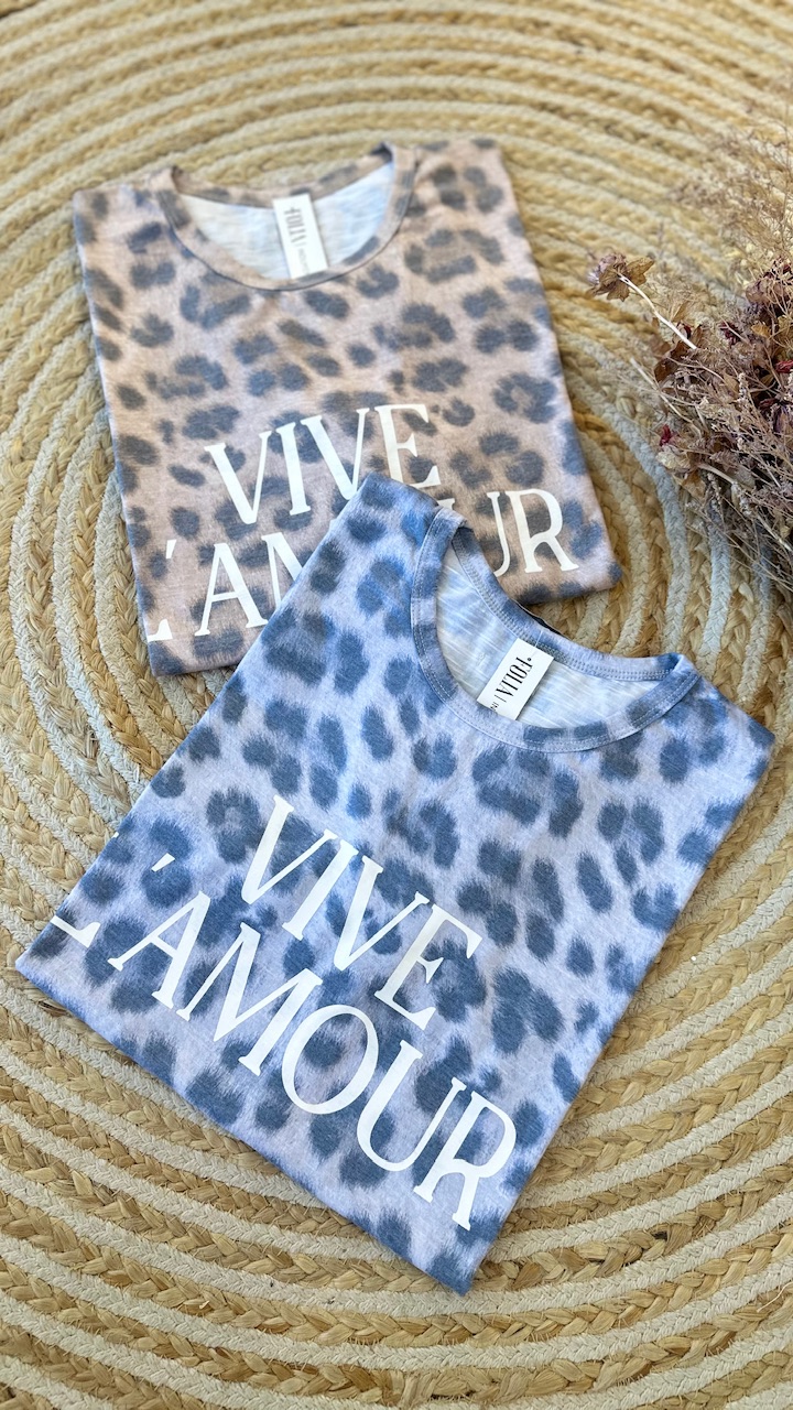 • Remeron flame de algodon estampado leopardo con texto Vive L amour. Medidas: Largo 63cm. x Ancho 56cm.
