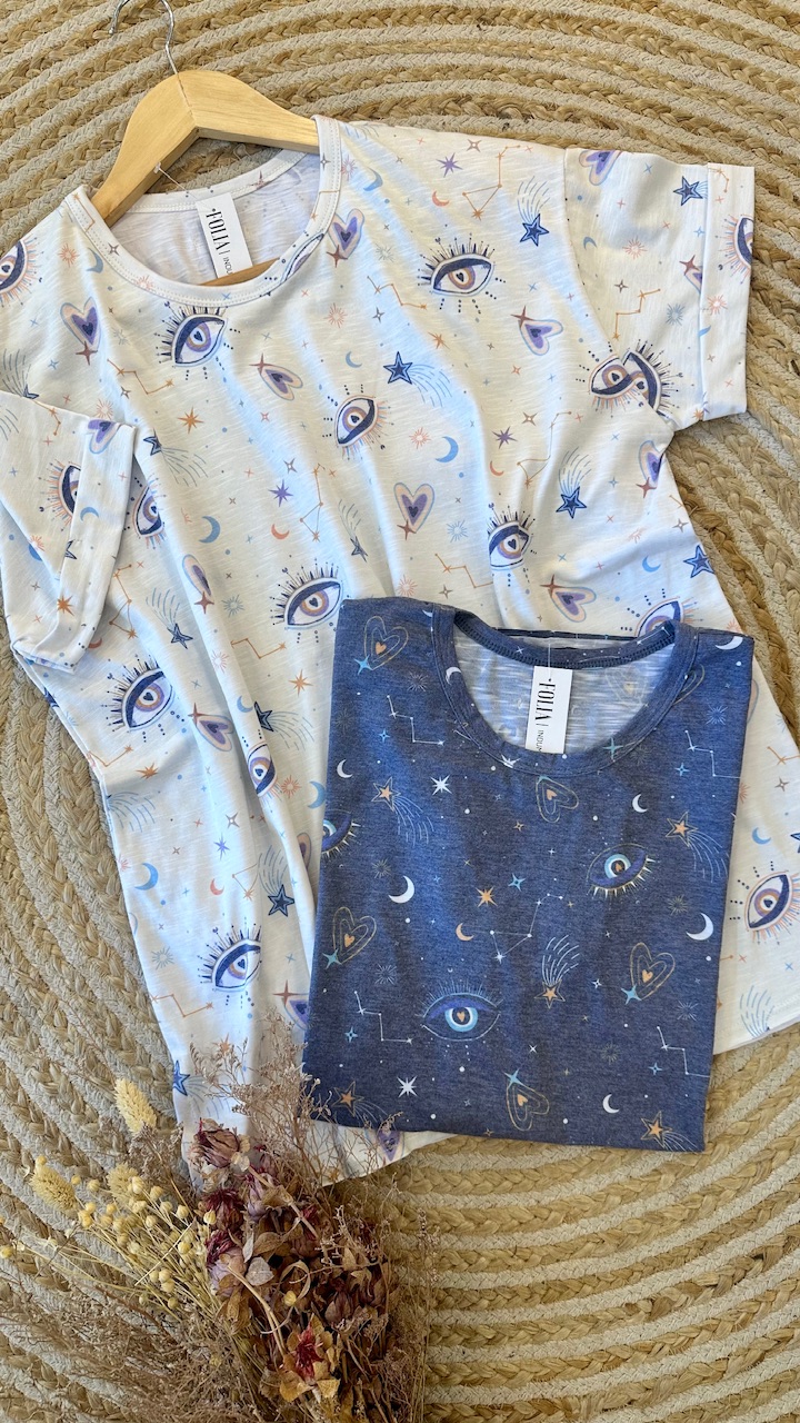 • Remeron flame de algodon estampado Lucky Eye. Medidas: Largo 62cm. x Ancho 55cm.