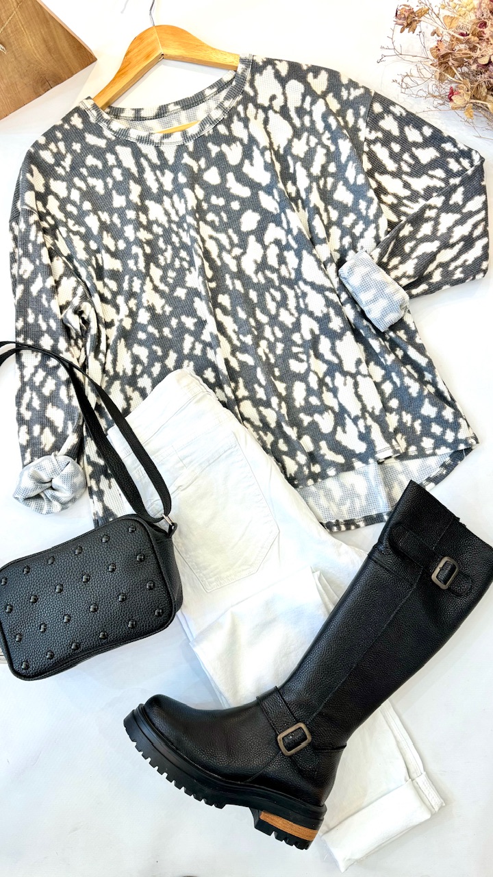 • Buzo wafle de rayon estampado Viena, escote redondo