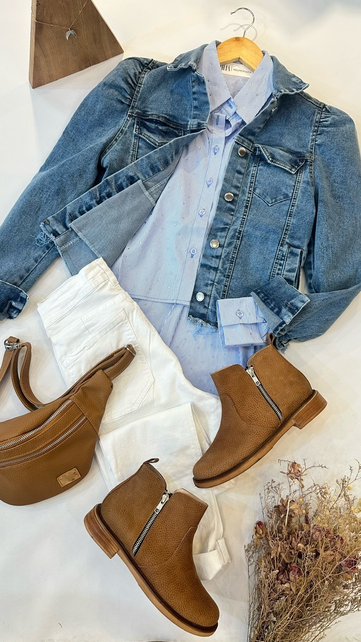 • Campera de jean con manga princesa. Medidas: Largo 48cm. x Ancho 38cm.